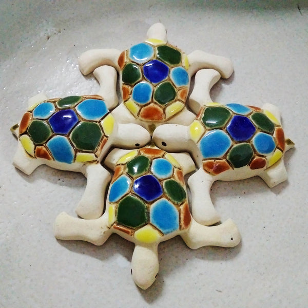 ... but these cakes will break teeth. On a more serious note, colored bisque is then kiln fired again a second time to 1250°C to turn them into fully vitrified stoneware and set the colors. Glazed, vitrified ceramic absorbs very small amount of water, making them very resistant to weather.